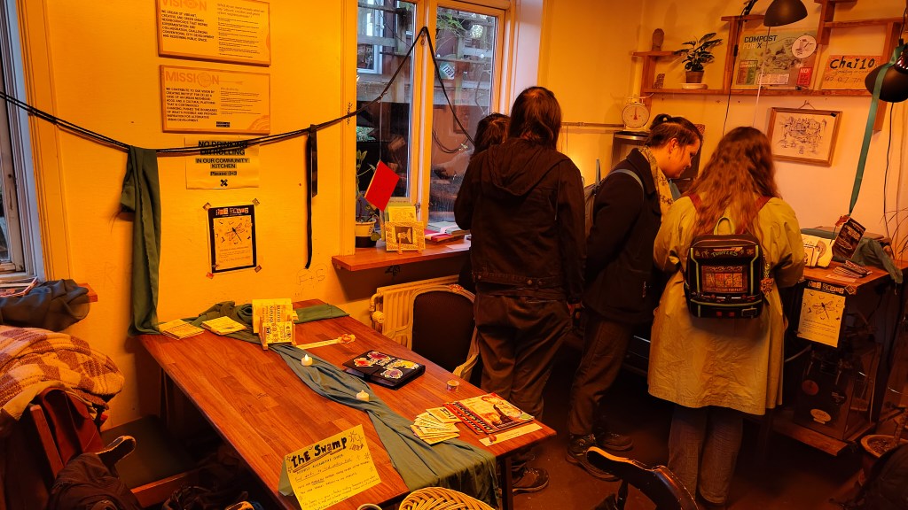 Our team consists of Sarafina and Sebastien, who are active in facilitating communities in Aarhus with a focus on knowledge-sharing, along with illustrator Miriana, who brings comic and book fair experience and much more! You can participate in The Swamp… by participating in our zine-making hangouts, submitting zines to our popup markets, organising zine-making hangouts and more!
