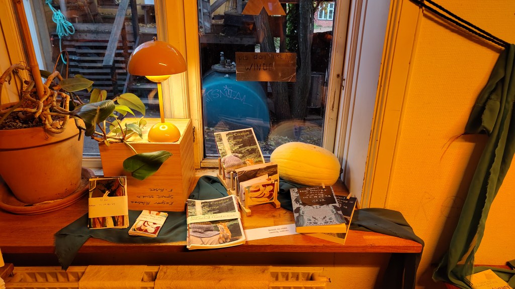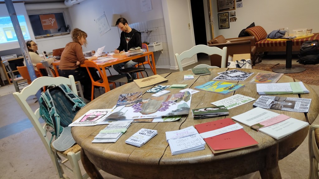 Creators put a sleeve with their mobilepay number (or that of an organisation they wish to donate proceeds to) and the price. Typically, zines in the market are sold for 5-30 kr, and there are 5-10 copies of each zine in the popup – but these details are entirely up to the creator, who can also make the zines free or ‘Pay-what-you-want’.